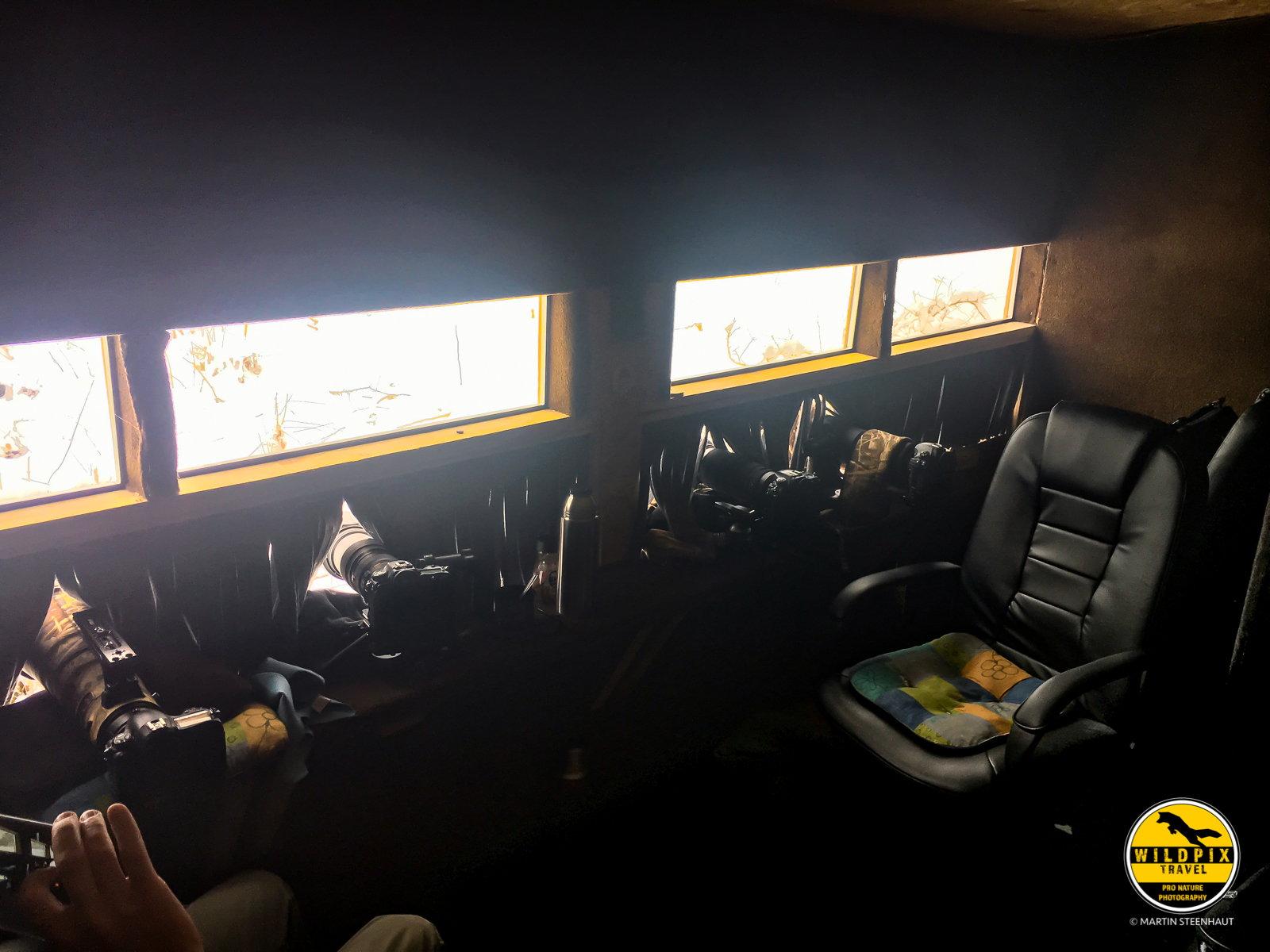 Groot pluspunt van deze hutten is dat u kijkt door glas maar fotografeert zonder glas wat de kwaliteit van uw beelden absoluut ten goede komt.