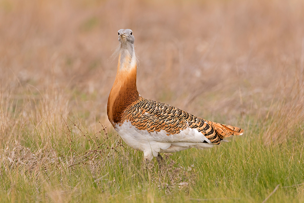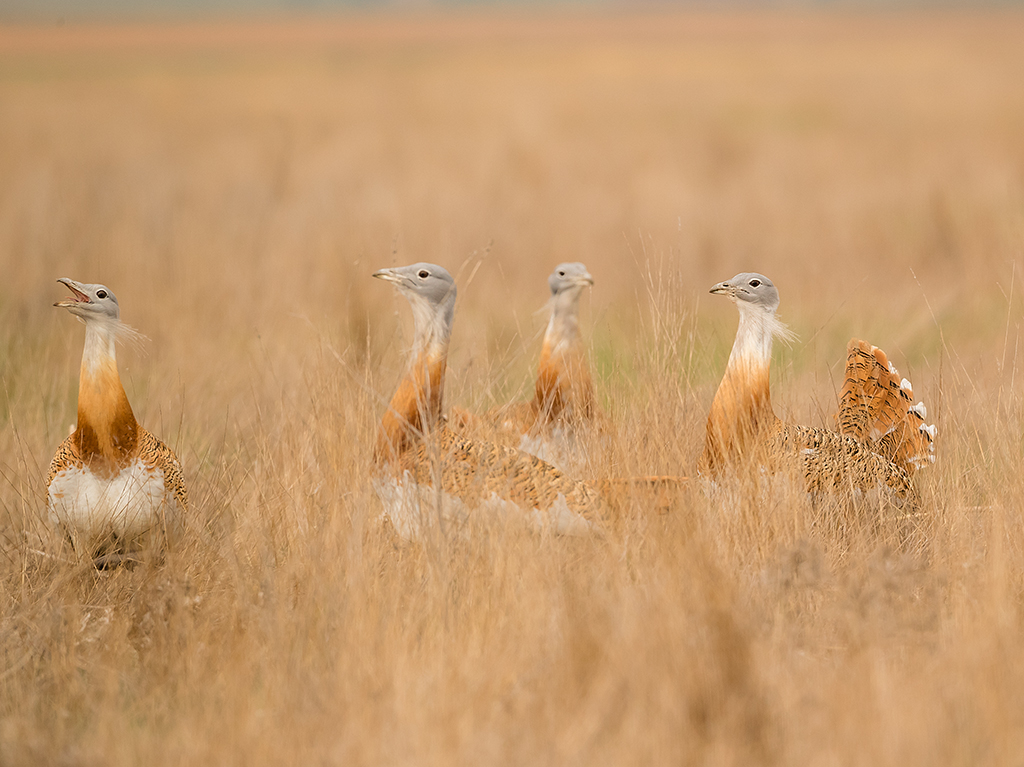Maar dat is nog niet alles. In dit gebied woont ook de majestueuze Grote Trap, de grootste vogel van Europa. Hier leeft hij vrij en ongestoord, en wij kennen de perfecte plekken om dit schouwspel van dichtbij te bewonderen. Vooral tijdens de baltsperiode onthult hij een onwaarschijnlijk mooie verenpracht en gedrag. Wij zijn volledig overtuigd van de schoonheid van deze locatie, en onze eerdere resultaten spreken voor zich.