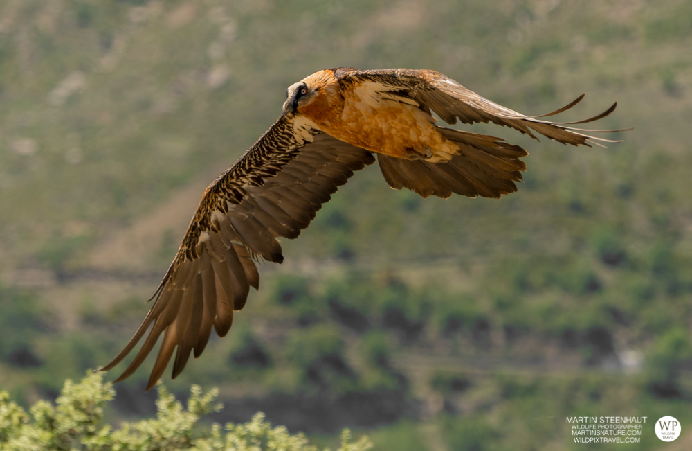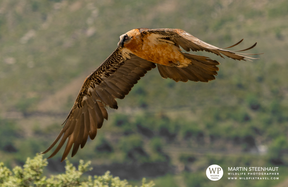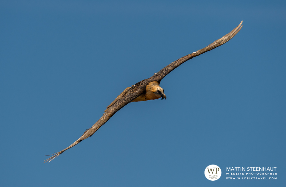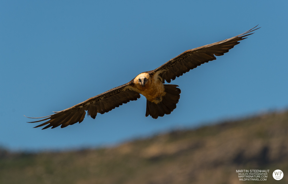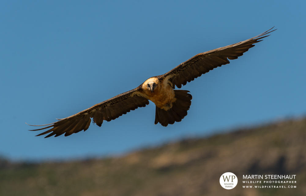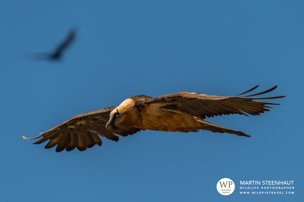 Maar vooral ook de super zeldzame Lammergier kiest deze plek uit om te jagen. Deze vogel heeft het erg moeilijk in Europa en overleeft enkel door intensieve beschermingsmaatregelen. Gelukkig hebben die op deze plek effect en kan men hem dus regelmatig voor de fotohut zien. Uiteraard is dat geen garantie, het blijft een zeer schuwe en zeldzame verschijning maar met wat geluk lukt het vaak wel.