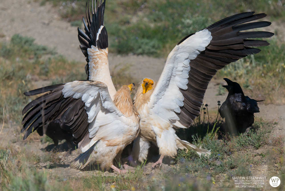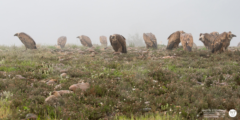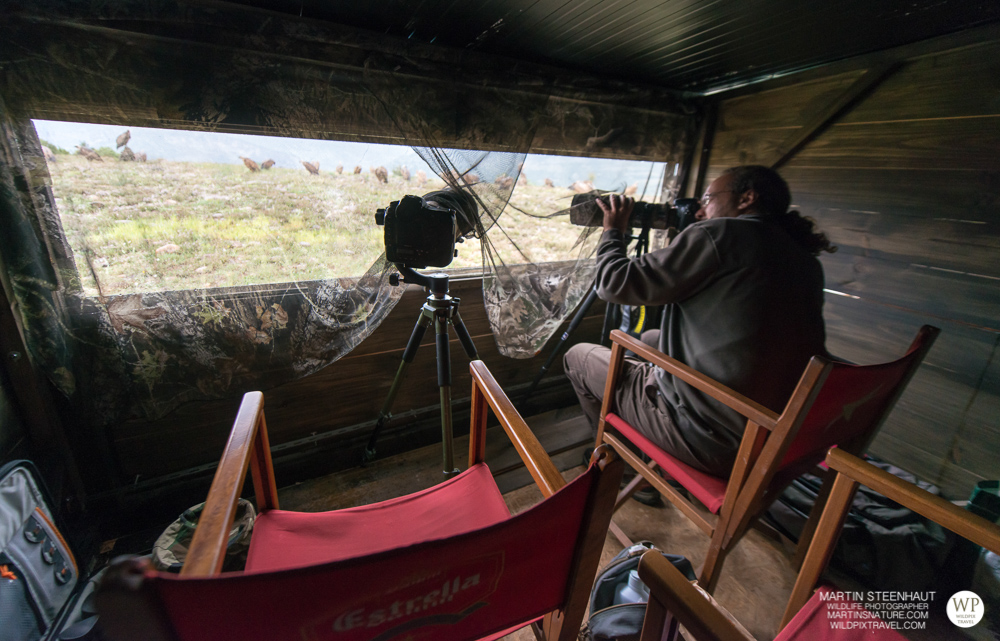 Sinds vele jaren hebben hier verschillende kolonies Vale Gieren hun plaats gekozen. Zij landen vaak in grote aantallen voor de hutten en dat alleen al is met hun spanwijdte van ongeveer 3m een hele beleving. Soms komen ze tot op enkele meters van de hut en ze zo dichtbij kunnen observeren is echt uniek. Met wat geluk zit er ook een Monniksgier en Aasgier bij.