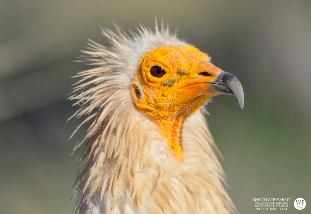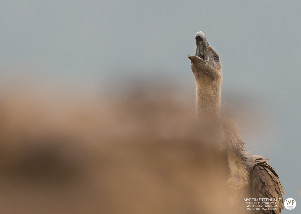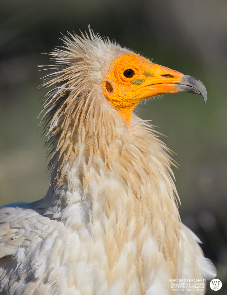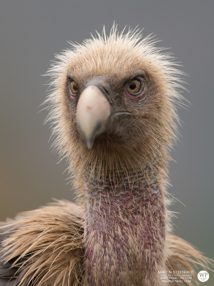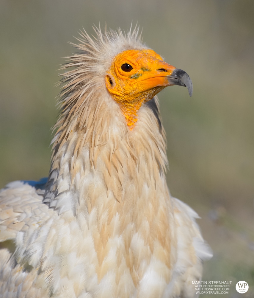 Dit moet ongeveer de mooiste roofvogel van onze planeet zijn. Hem de eerste keer zien is werkelijk een belevenis. Meestal komt hij als alle andere gieren de plek verlaten hebben. Zijn silhouet, vlucht en kleur zijn onmiskenbaar. En als je hem dan kan bekijken door camera of verrekijker is het simpelweg WAUW! Wat een tekening en kop heeft hij, alsof getekend door een artiest.