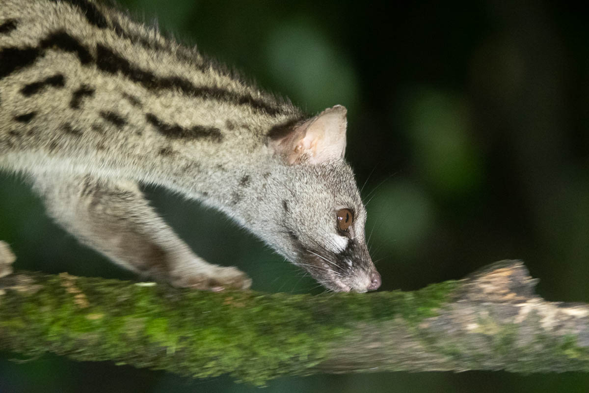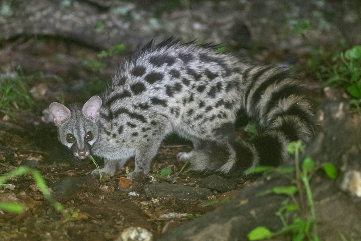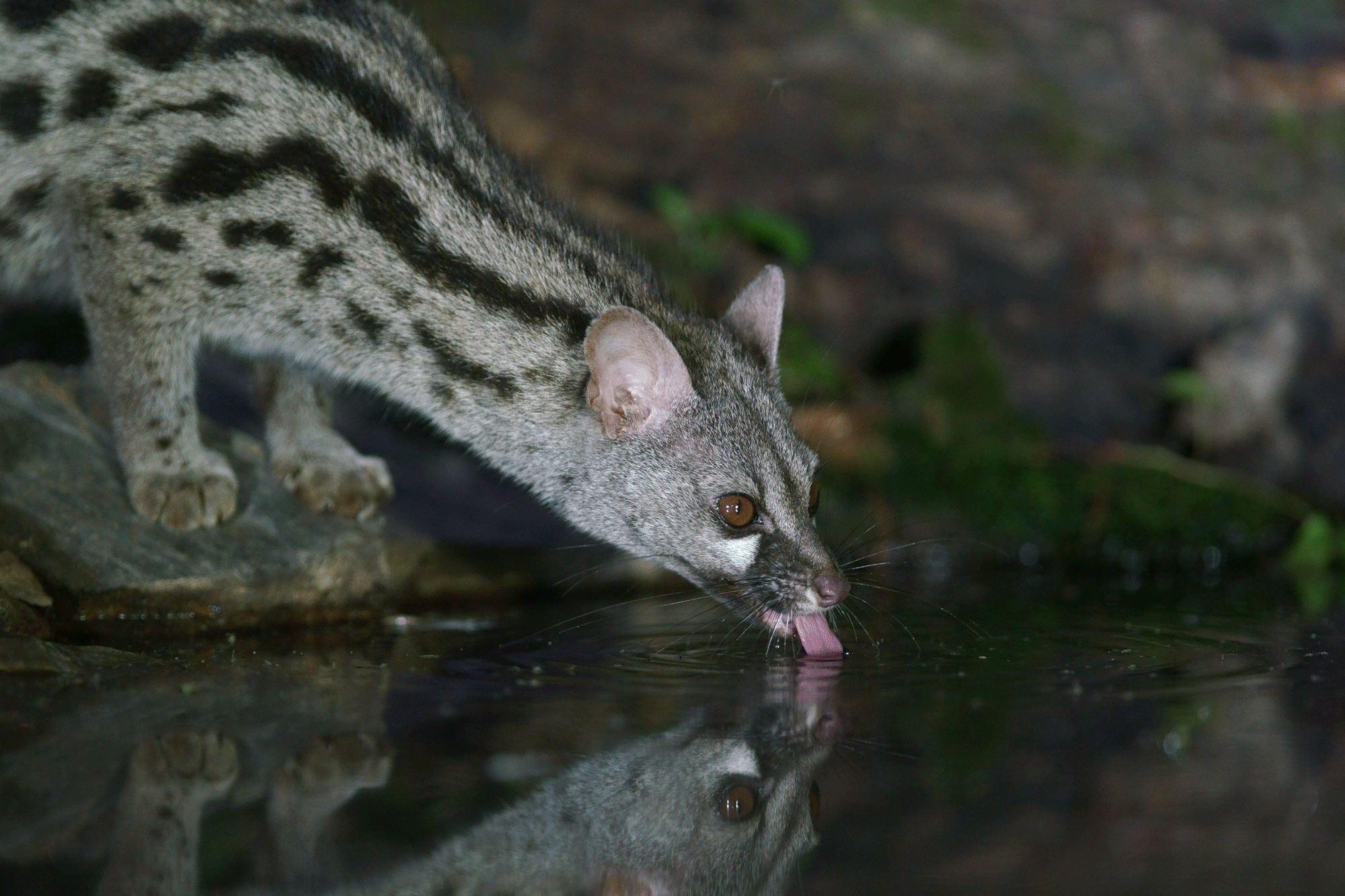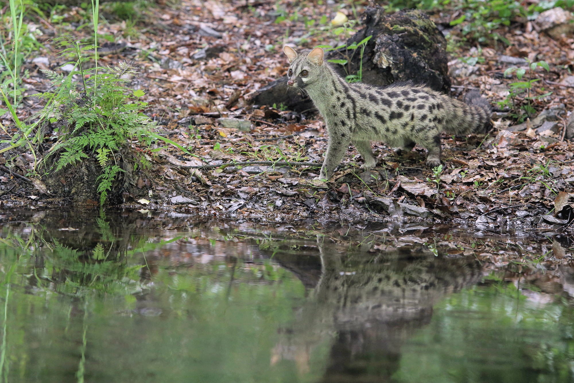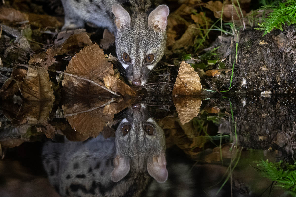 Onze technisch vernuftige fotohutten zijn strategisch geplaatst, zodat u een perfect zicht hebt op een natuurlijke setting van weelderig bos en glinsterend water. Hier komt de Genetkat vaak tevoorschijn zodra de schemering begint. Deze nachtactieve dieren gedijen in de duisternis en het gebrek aan kunstmatig licht biedt u als fotograaf voldoende natuurlijk ogend licht om de magie van hun gedrag vast te leggen. Het is een betoverend schouwspel om deze zeldzame wezens te zien opduiken vanuit de weelderige bossen.