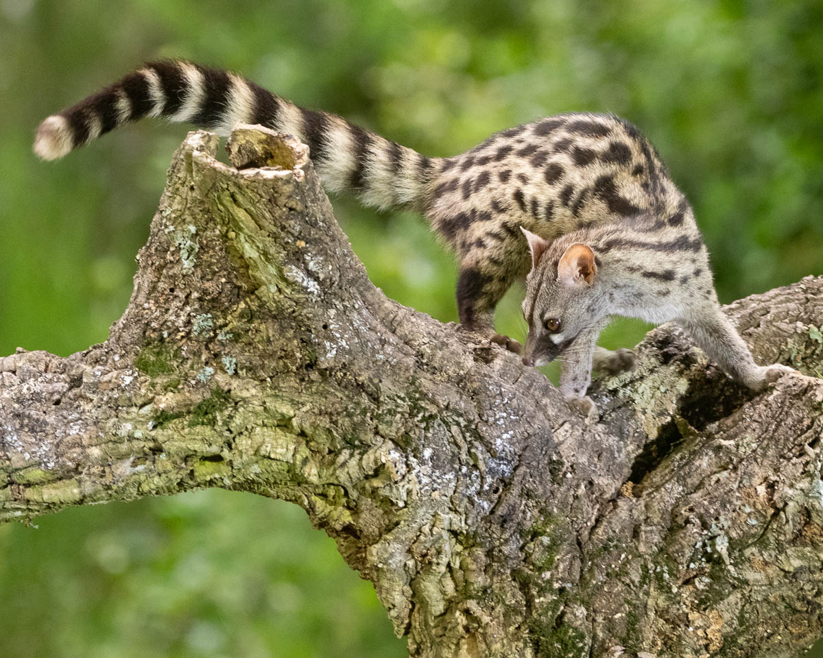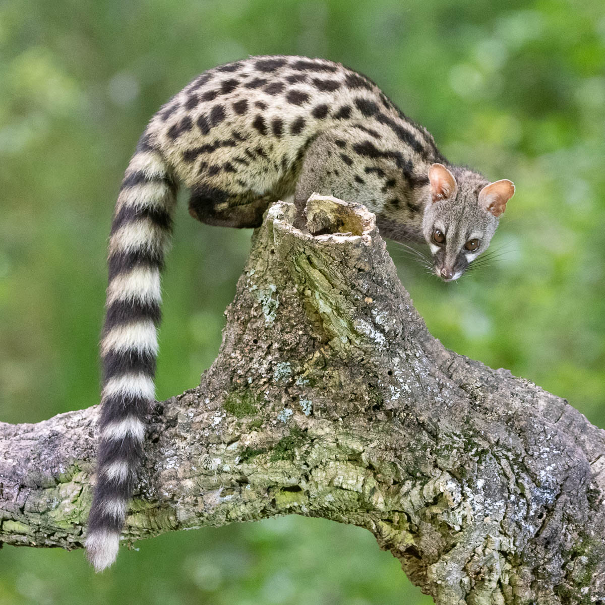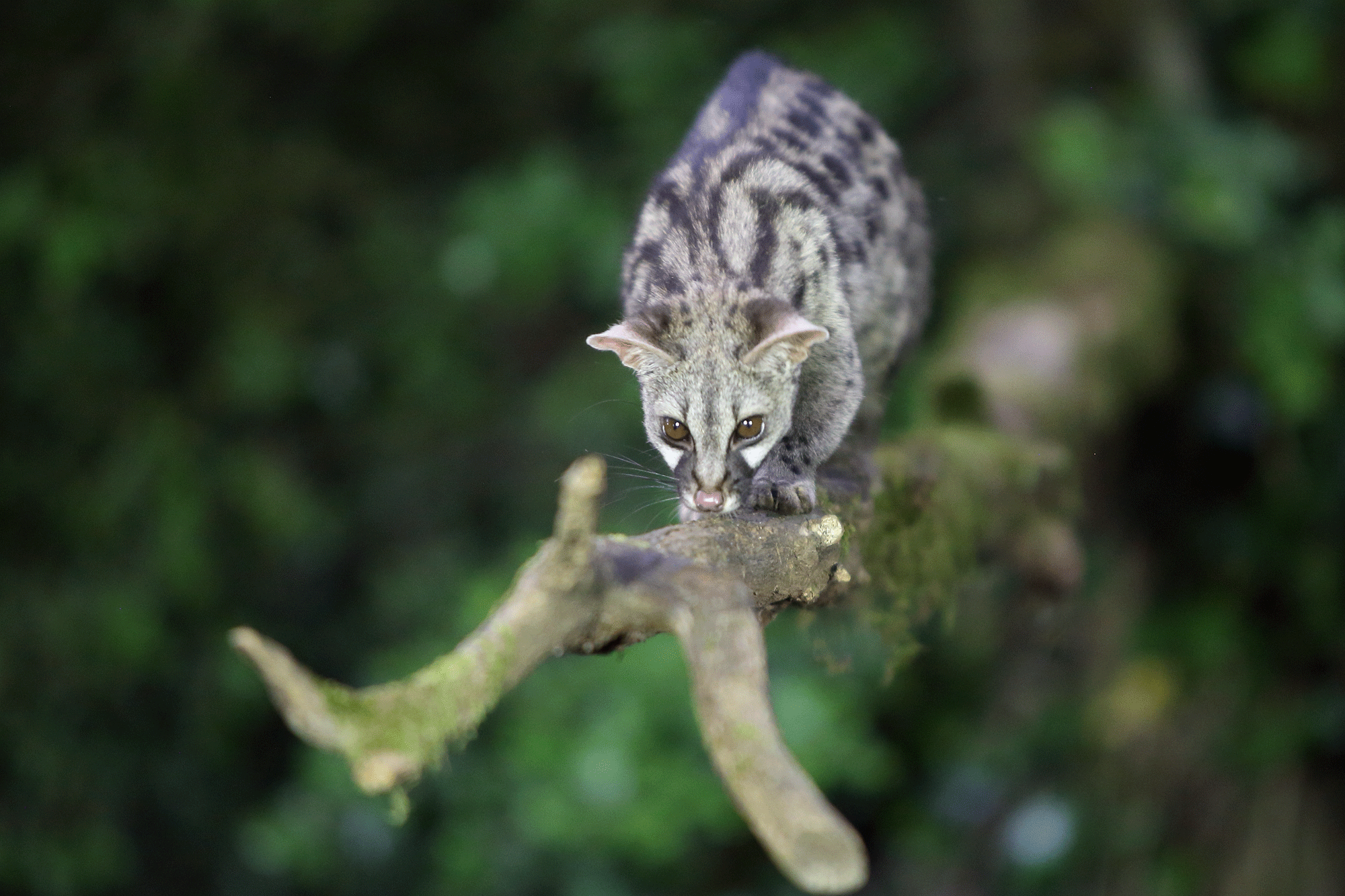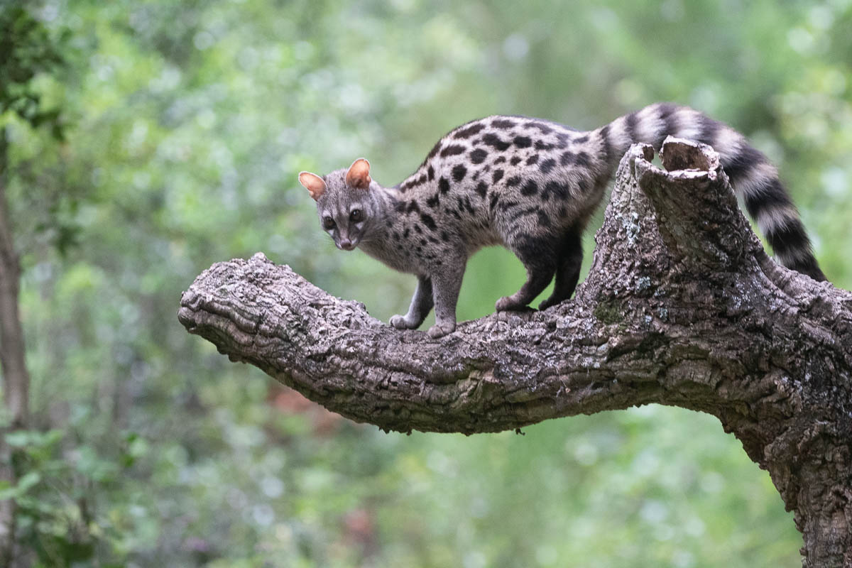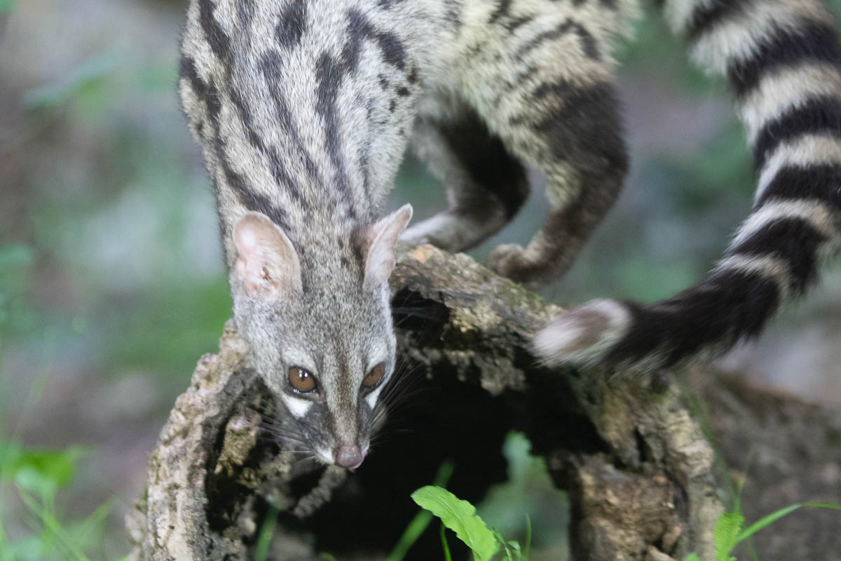 Onze technisch vernuftige fotohutten zijn strategisch geplaatst, zodat u een perfect zicht hebt op een natuurlijke setting van weelderig bos en glinsterend water. Hier komt de Genetkat vaak tevoorschijn zodra de schemering begint. Deze nachtactieve dieren gedijen in de duisternis en het gebrek aan kunstmatig licht biedt u als fotograaf voldoende natuurlijk ogend licht om de magie van hun gedrag vast te leggen. Het is een betoverend schouwspel om deze zeldzame wezens te zien opduiken vanuit de weelderige bossen.