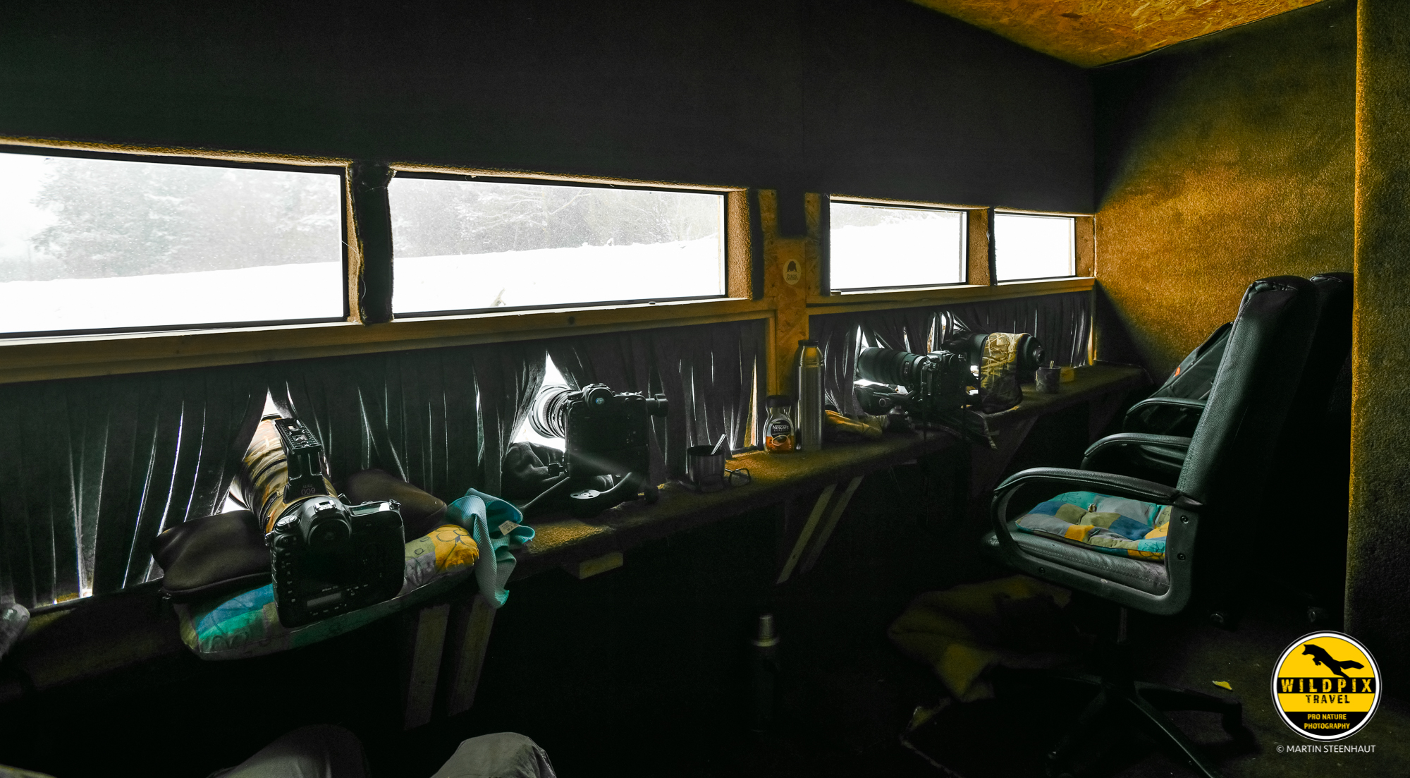 Groot pluspunt van deze hutten is dat u kijkt door glas maar fotografeert zonder glas wat de kwaliteit van uw beelden absoluut ten goede komt.