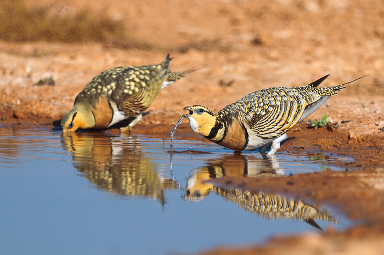Water is schaars in dit bijna woestijnlandschap, waardoor onze permanent gevulde waterpunten niet alleen een magneet zijn voor zandhoenders, maar ook voor een verscheidenheid aan andere soorten: van wulp, tortelduif tot klauwier en nog veel meer, verwacht het onverwachte!